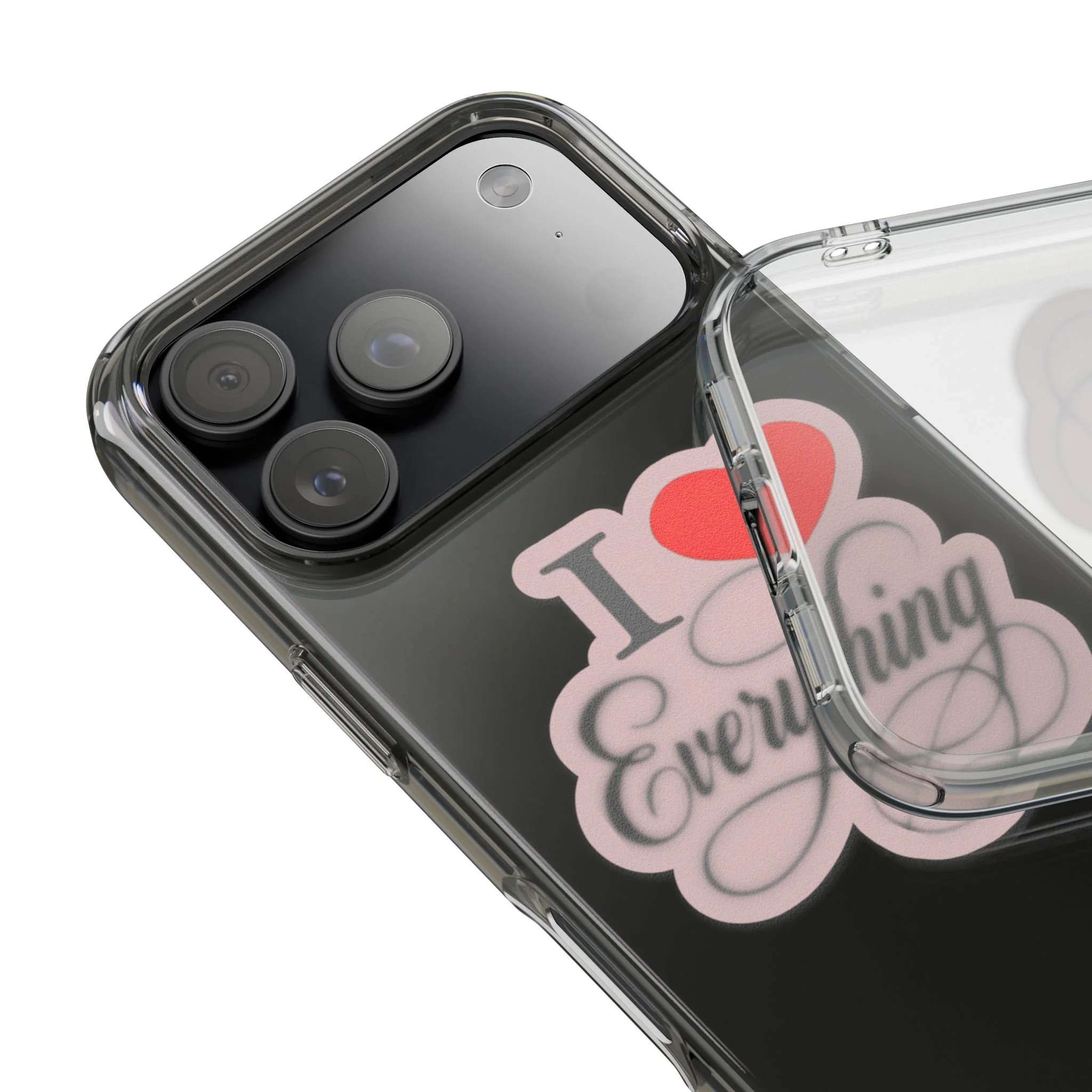 Clear, impact-resistant phone case with edge-to-edge 3D print.